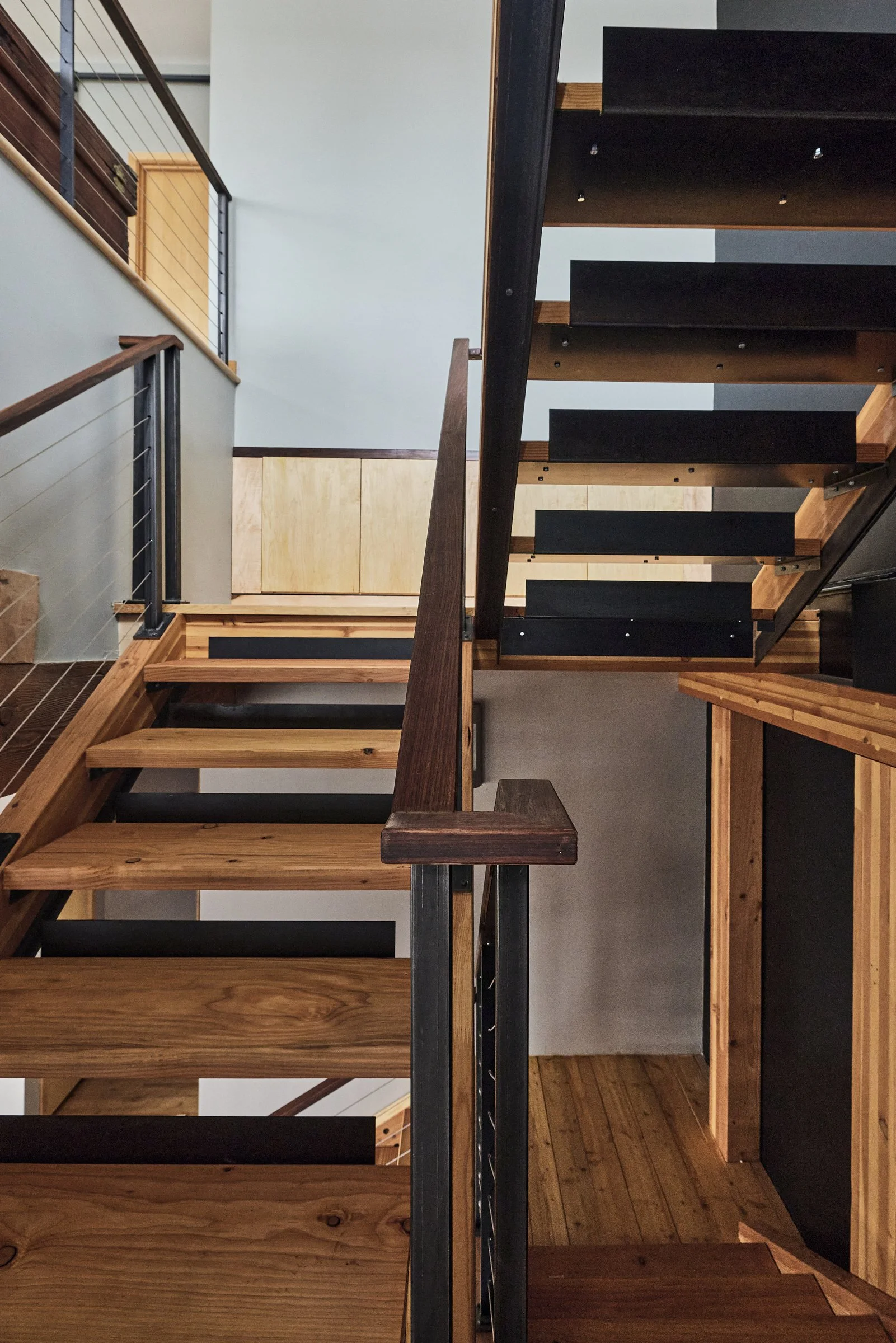 This small staircase project in a warehouse loft transformed the function and feel of the overall space. Previously, the second level was only accessible via a small spiral stair, which lacked both utility and beauty. We built an elegant and highly functional staircase. Not only does the new stair provide ease of ascending, but it also showcases our craftsmanship and attention to detail. Form follows function.
